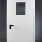 Противопожарная дверь изготавливают из стали, с базальтовыми изоляционными плитами, уплотнениями для холодного и горячего дыма и противопожарными замками.