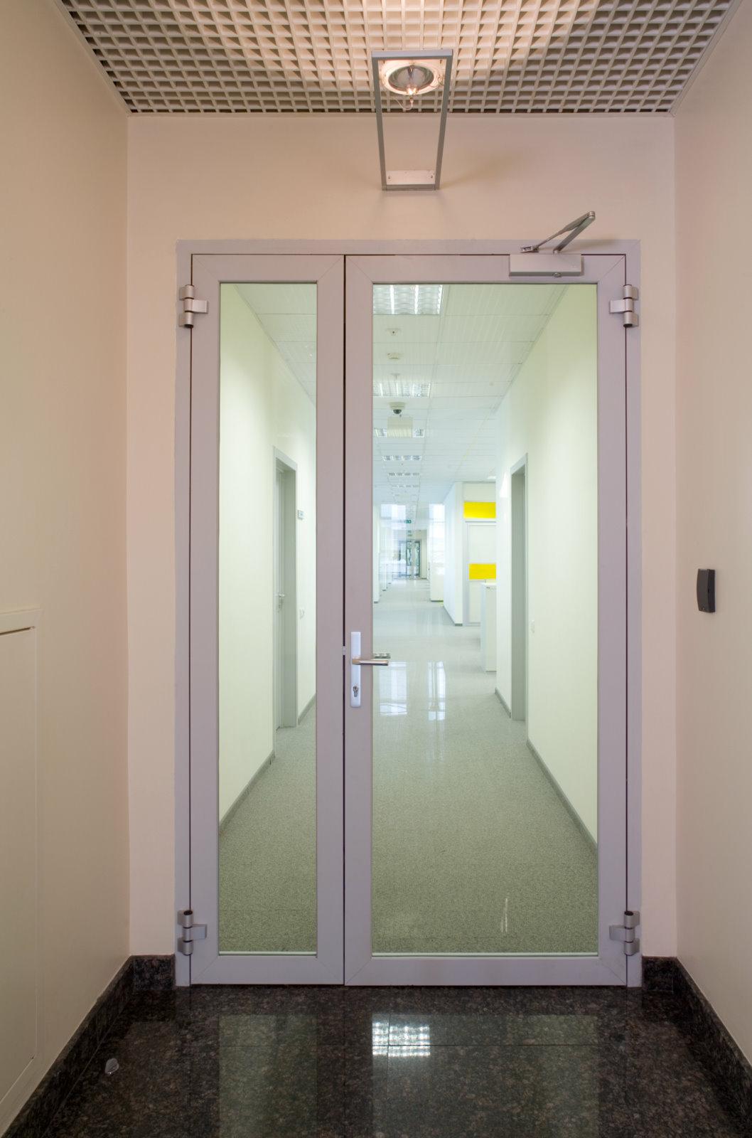 От качества заполнителя зависит, насколько эффективно преграда будет препятствовать распространению высоких температур. Материал должен быть негорючим и стойким к температурным воздействиям. В комплектацию противопожарной алюминиевой двери также входят уплотнители, ручки, замки и иные элементы фурнитуры. Дополнительные фурнитурные детали: доводчики, отбойные пластины, пороги разных типов.