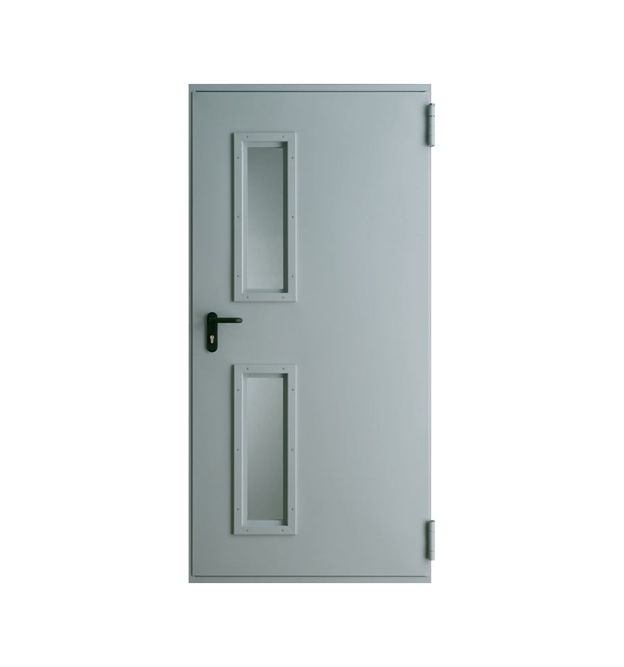 Противопожарная двупольная дверь со стеклом / серия FRM7299 — оптимальная альтернатива тяжеловесным конструкциям из стального профиля. При грамотном монтаже она эффективно справляется с основной функцией — защита от пожара. Противопожарные двупольные двери со стеклом закрепляются прочно и герметично, допускают исполнение в любых габаритах.
